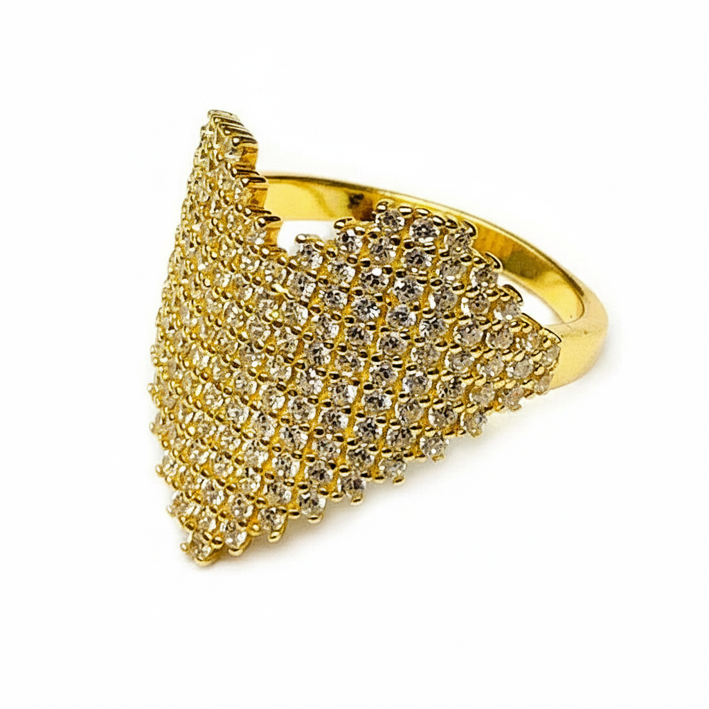 1. Elegant and eye-catching, this crystal pavé heart statement ring adds sparkle and sophistication to any outfit. Crafted with durable metal and shimmering crystals, it features a bold heart design available in gold and silver finishes. Perfect for parties, special occasions, or everyday glam.