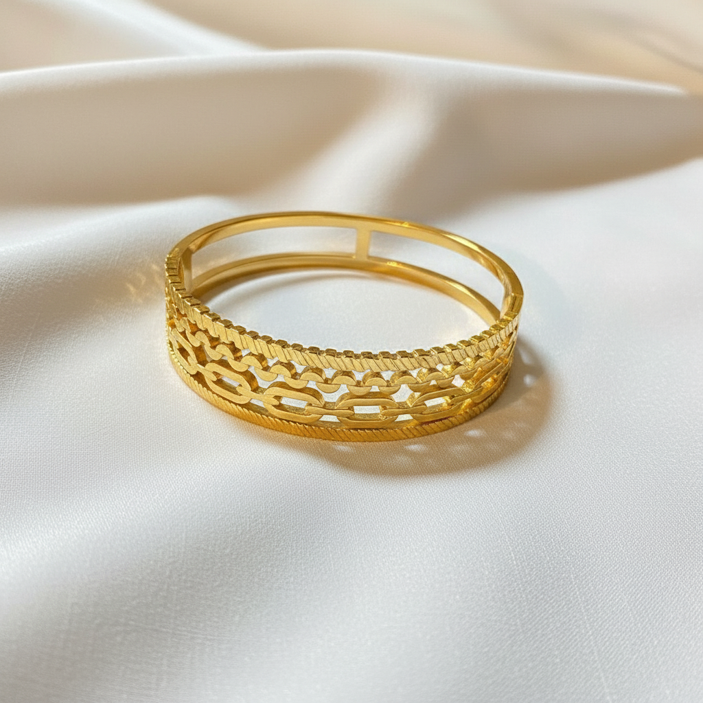 Made from high-quality stainless steel with a premium gold finish, this bangle is durable, tarnish-resistant, and comfortable for daily wear. Its sleek bangle style offers a refined and luxurious appearance suitable for both casual and formal outfits.