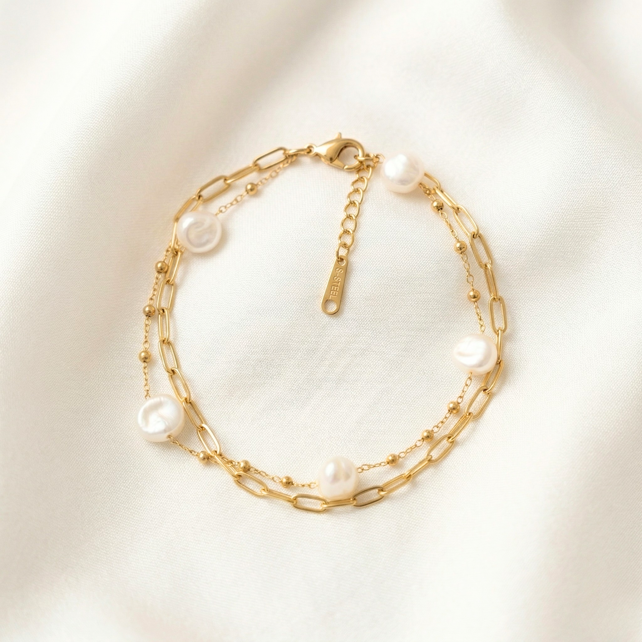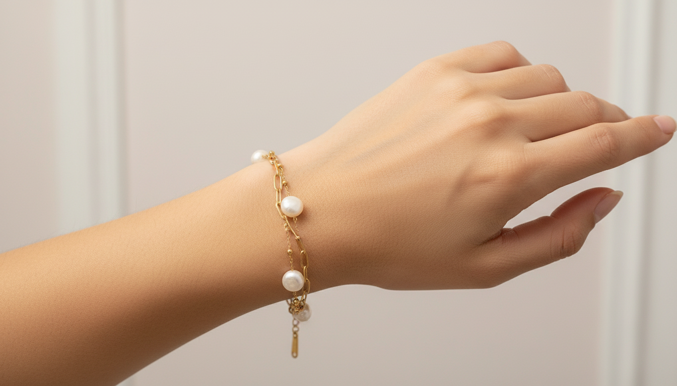 Elegant gold bracelet with delicate pearl accents, perfect for a minimal and classy everyday look.