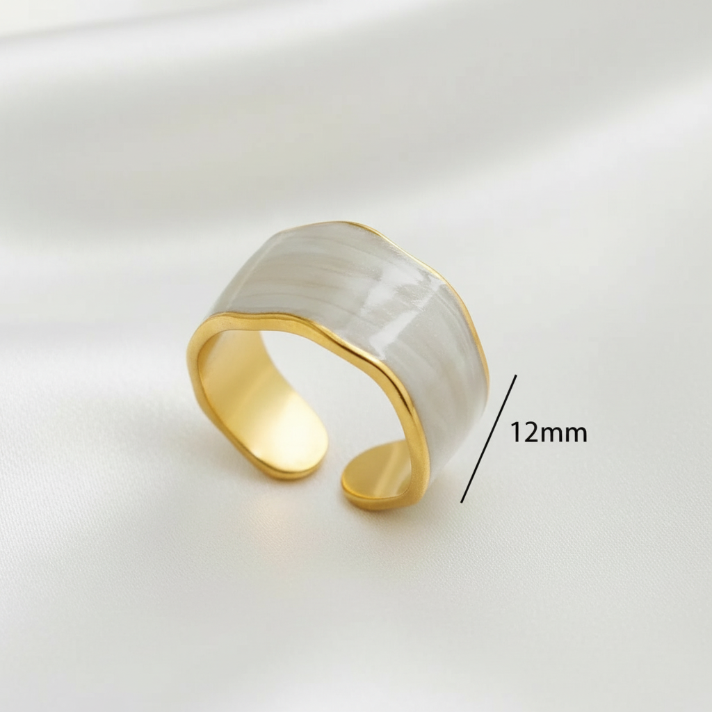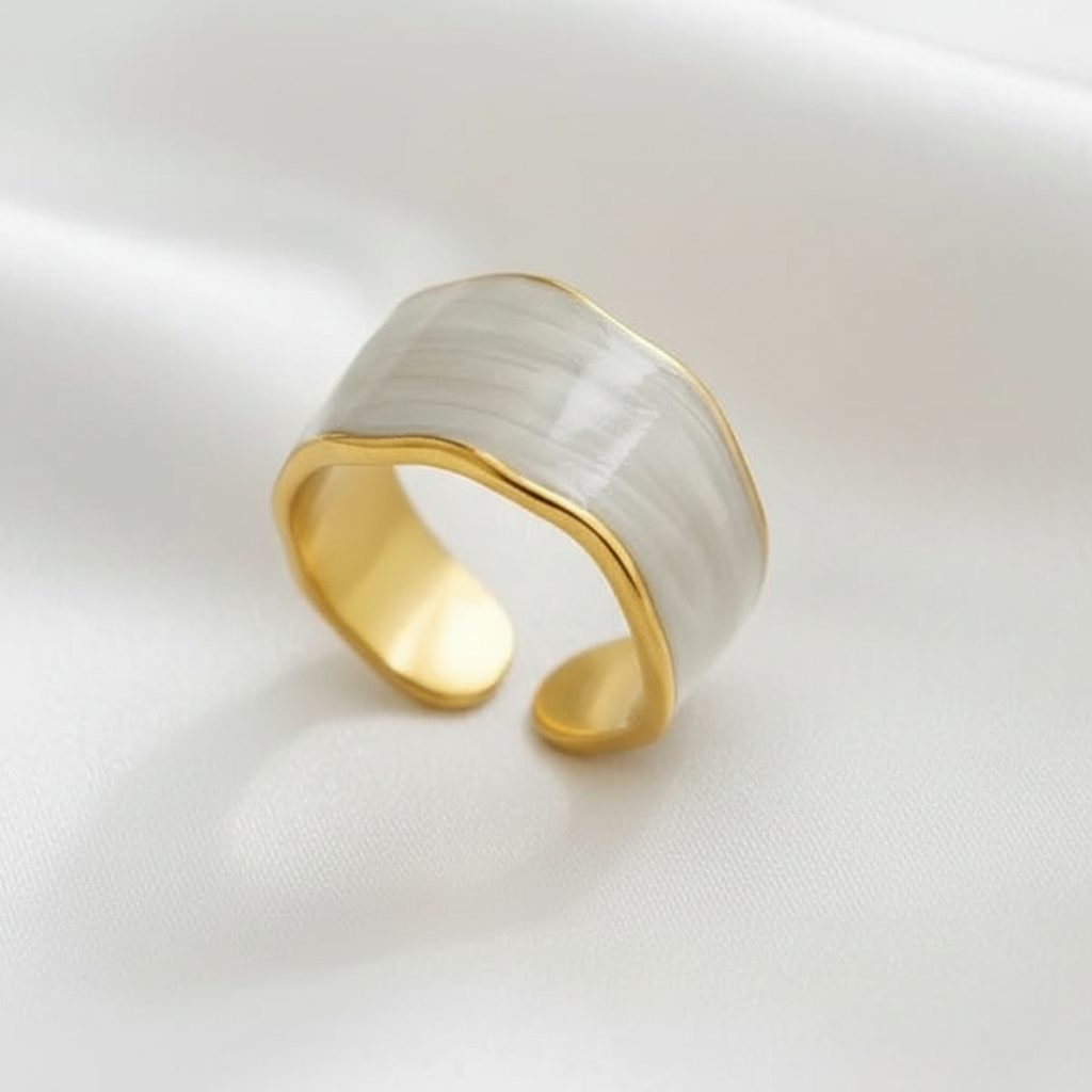 A beautifully crafted adjustable gold-tone ring featuring a smooth white enamel wave design. Minimal, elegant, and perfect for everyday wear or special occasions.