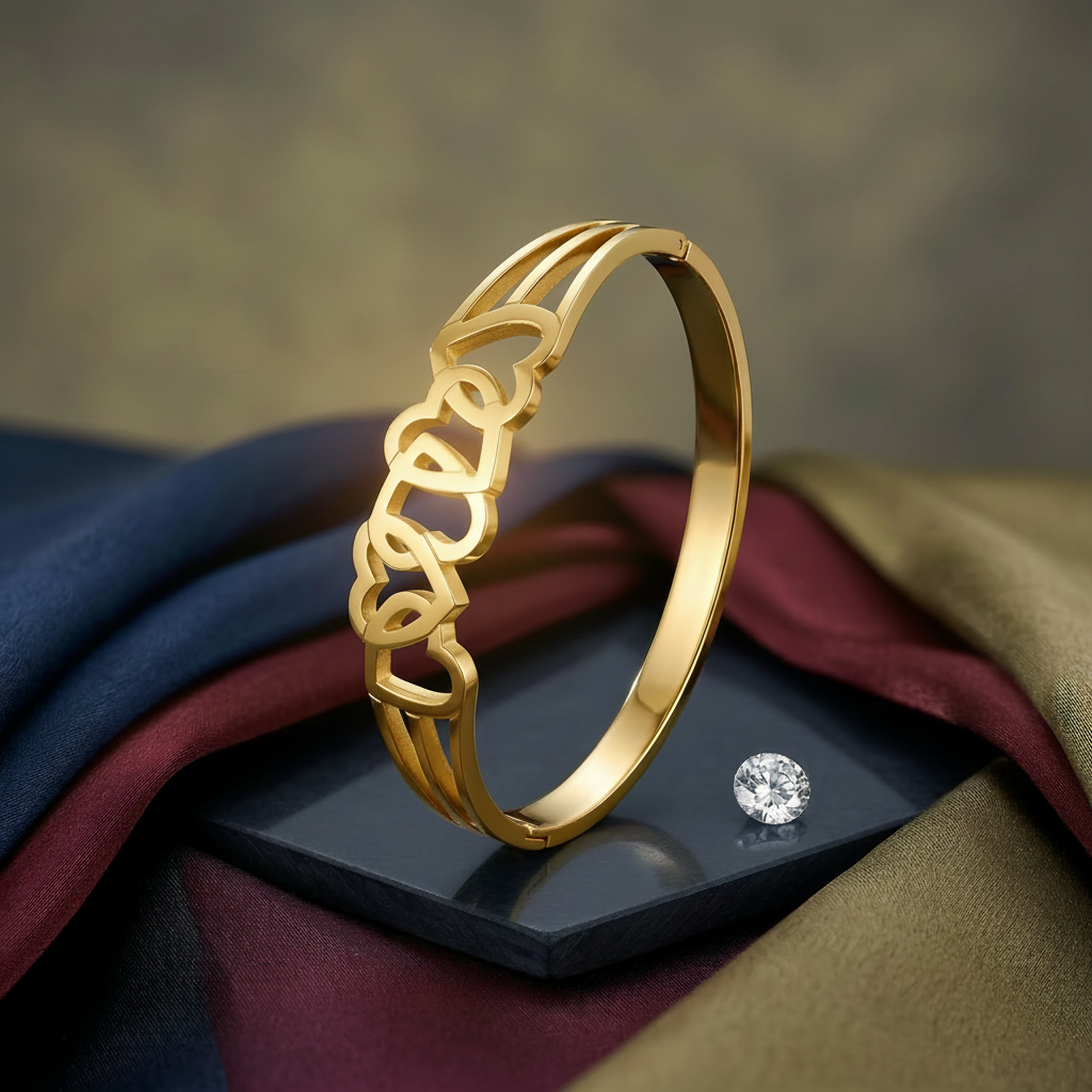 Gold Interlocked Heart Bangle for Women – Elegant Love Design Kada