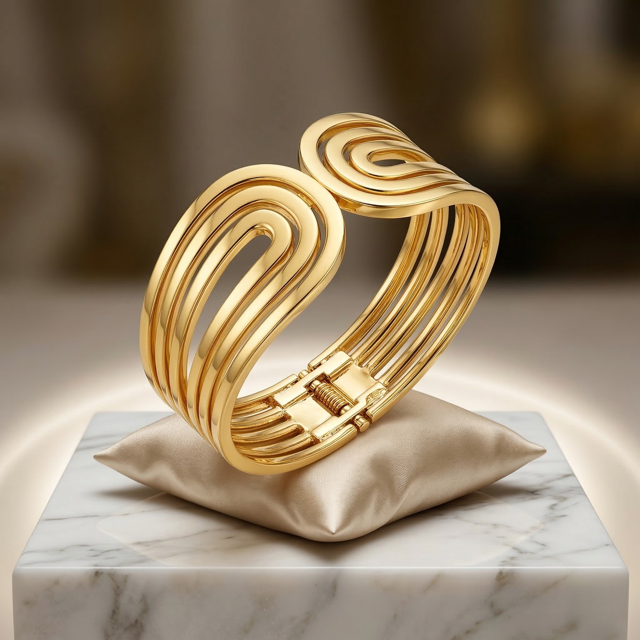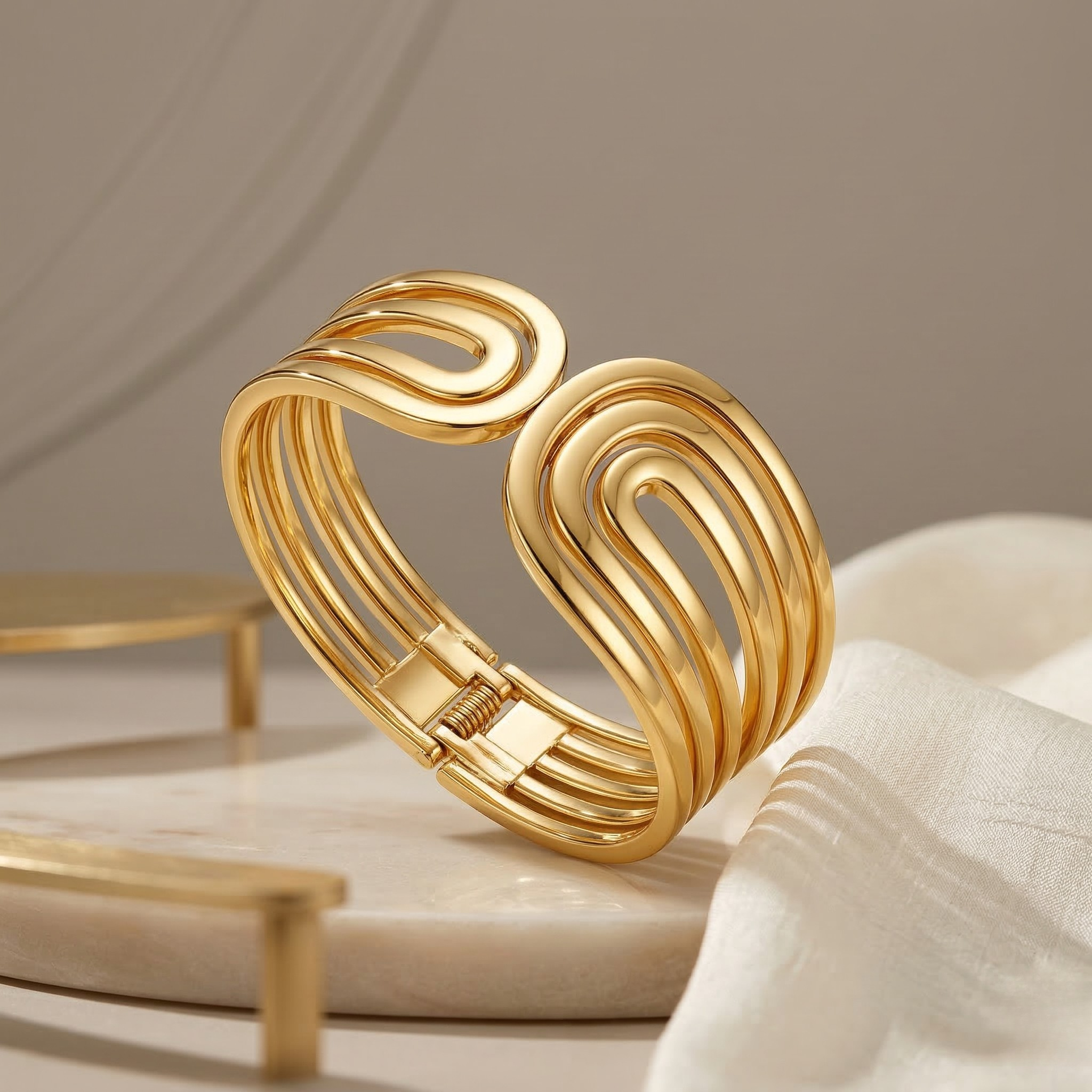 Gold Statement Cuff Bangle for Women – Modern Layered Open Design
