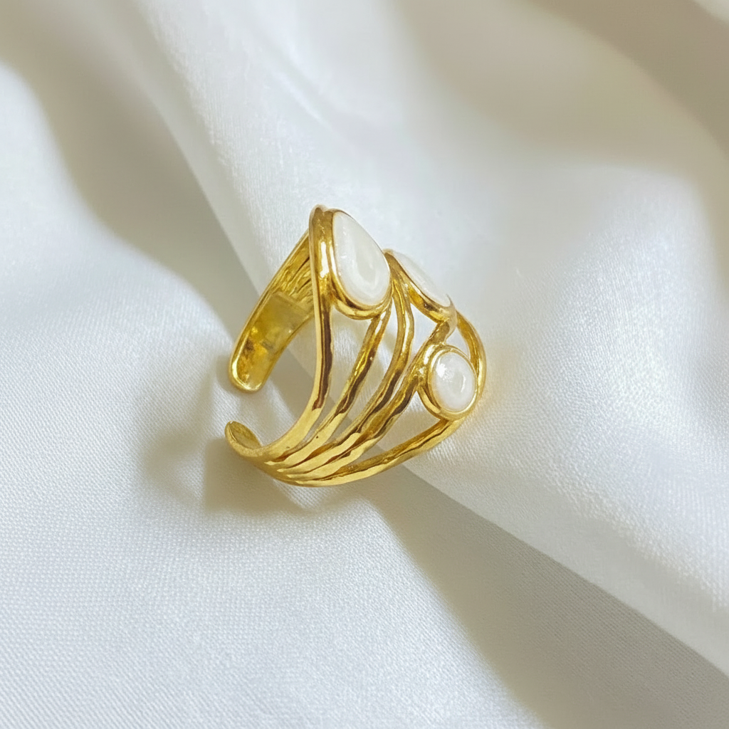 Elegant White Enamel Wave Adjustable Gold Ring